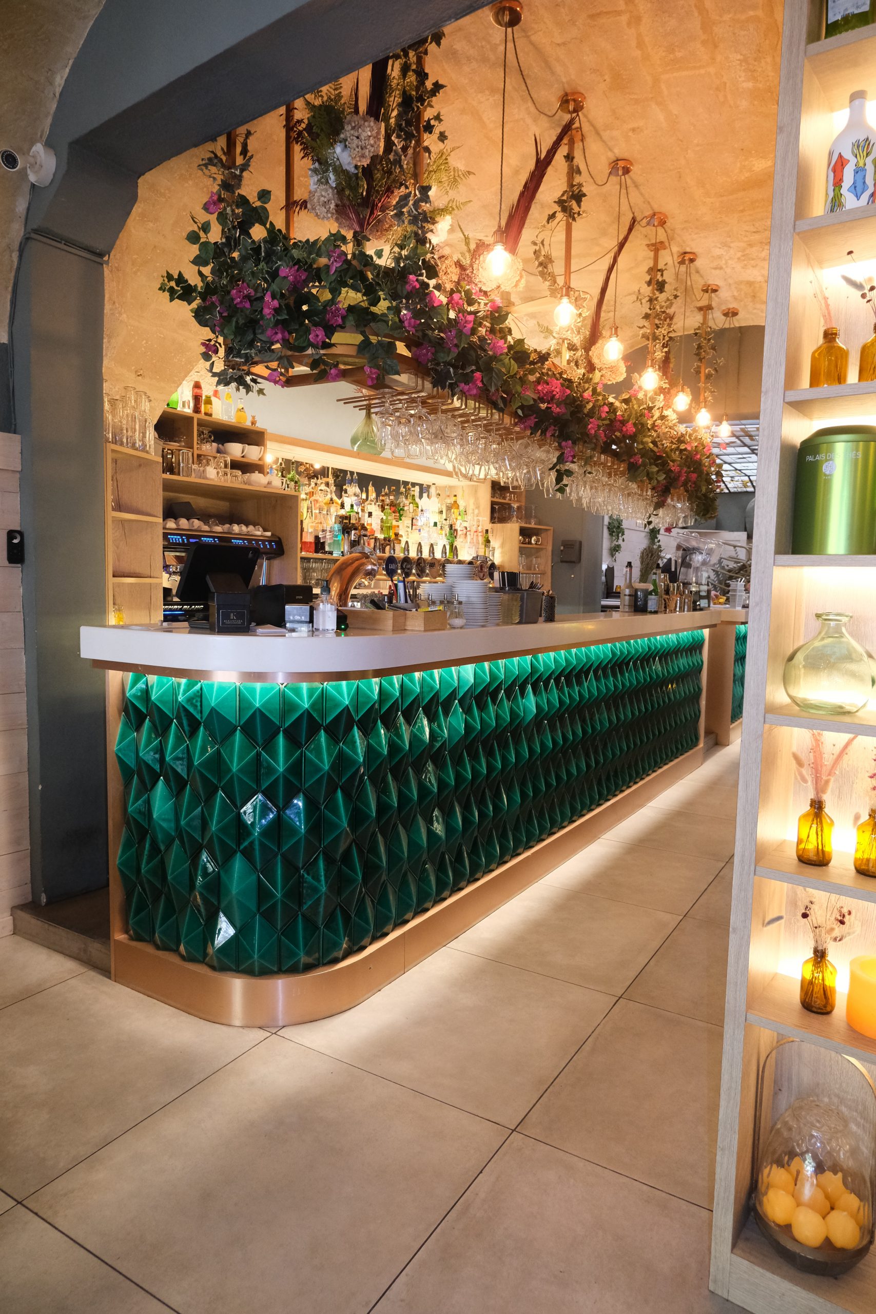 Restaurant La Fontaine à Uzès Nos équipes ont réalisé un comptoir sur-mesure pour le restaurant La fontaine : CarrelageEclairage LED 84 Share: