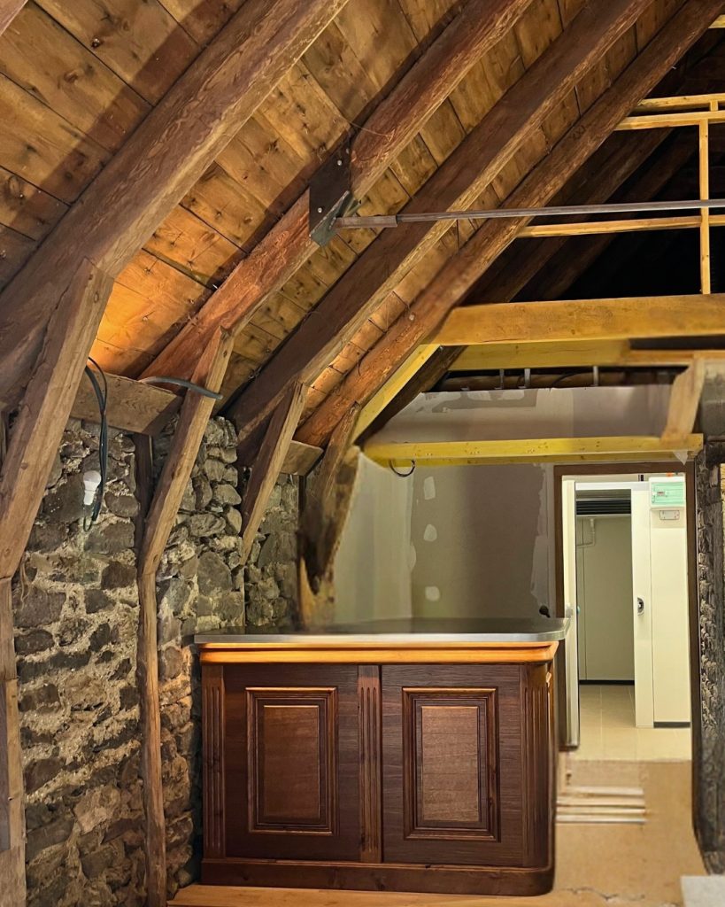 La Grange de Ginestouze nous a confié la réalisation d’un comptoir de bar en chêne massif avec une finition “teintée – vernis”, pensé pour sublimer la salle de leur restaurant à Nasbinals, dans l’Aubrac.